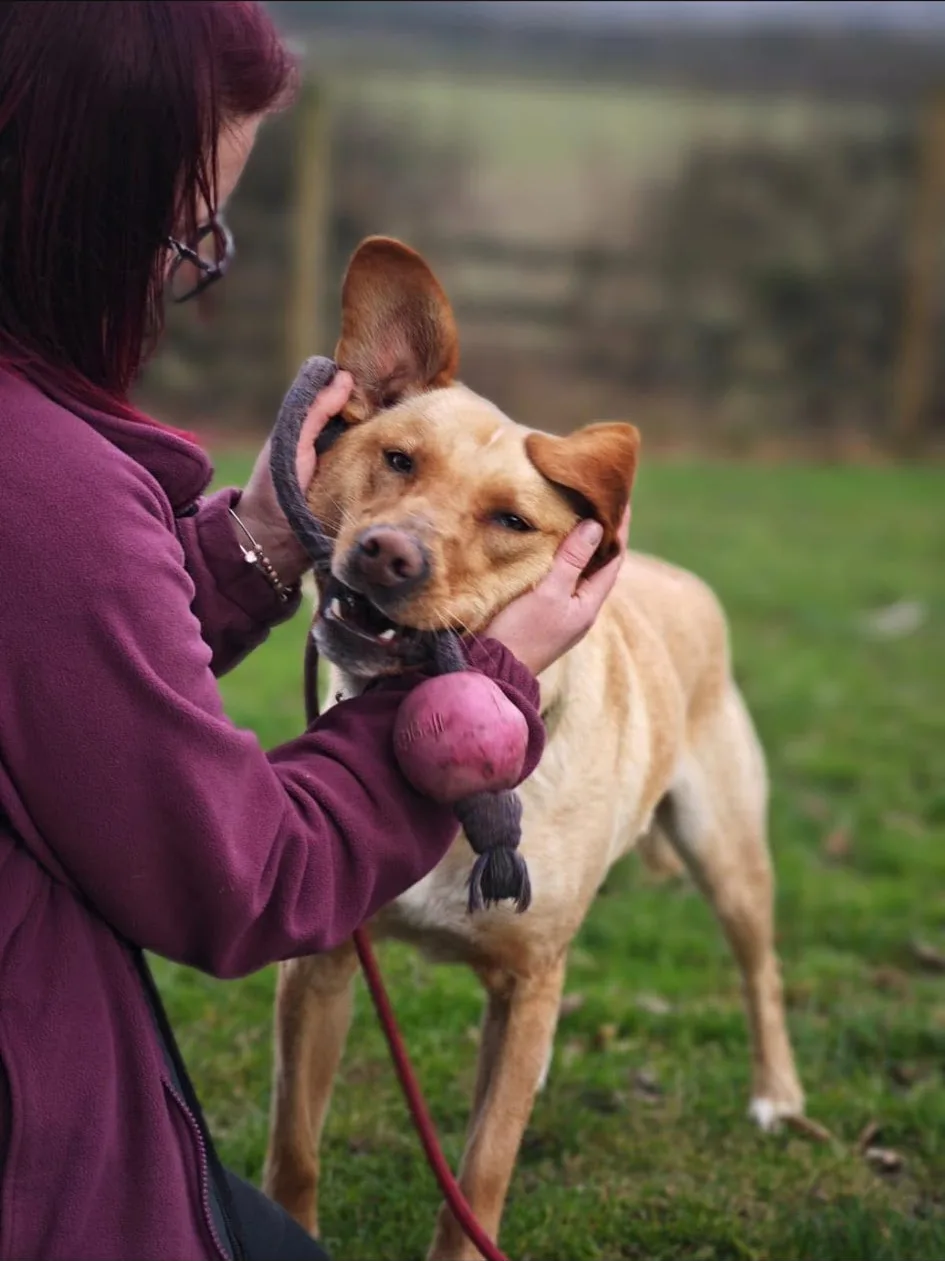 Freddie is very intelligent and loved a good run around the garden with his toy. He can be a bit boisterous when he is excited and due to his large size we would not rehome him with children, older teenagers will be considered especially if they are dog savvy. He would suit an active owner who can handle his bursts of energy. But at the end of the day, Freddie loves a snuggle just as much as any dog. He loves a chill out in our caravan and likes to lean on you so you can pop an arm round and watch TV together.