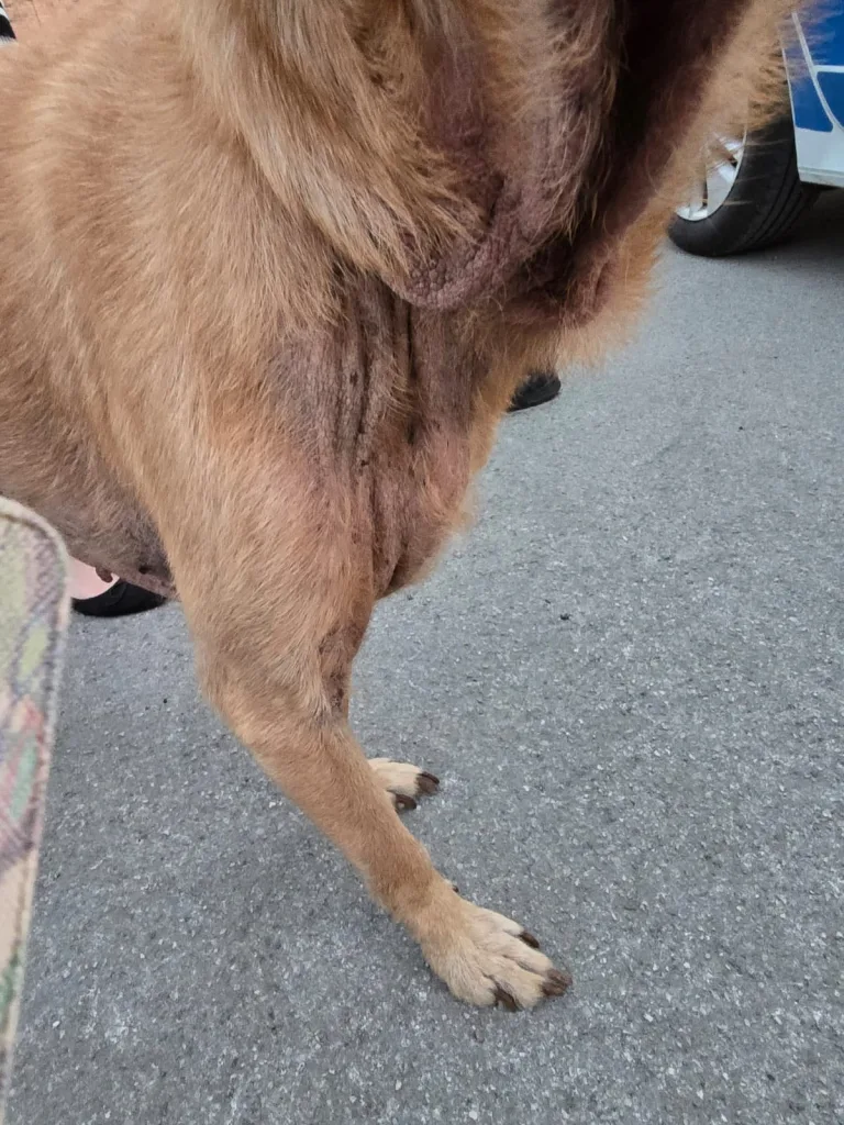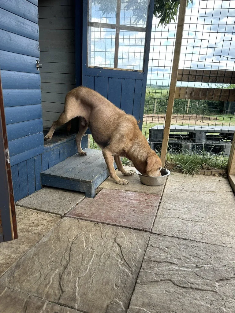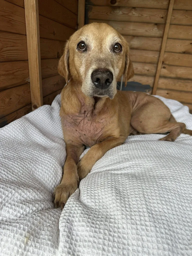 We got him out of the car, and a brief look told us Yogi was underweight, dehydrated, and suffering from severe skin issues. One of our dedicated trustees asked the owner to sign Yogi over to us so we could help him. It was entirely likely that he would otherwise have been put to sleep. That same trustee took Yogi into her home, getting him fed and keeping him safe until we could get him to the vet the next morning.
