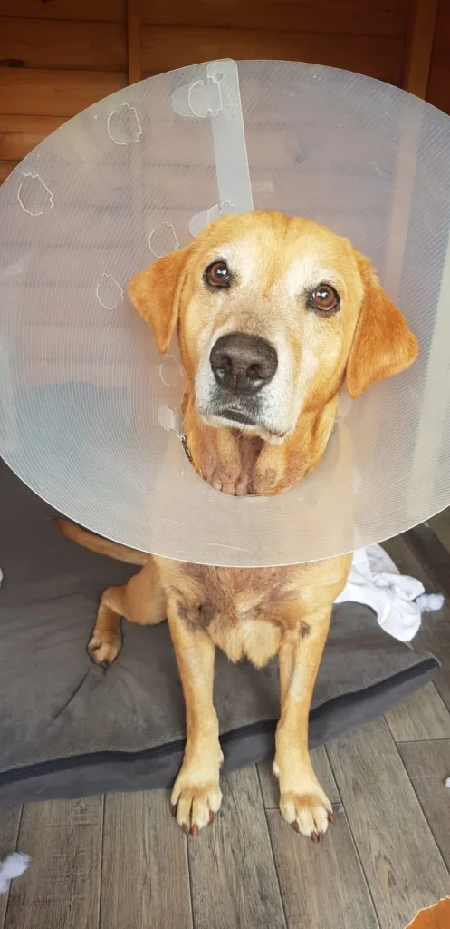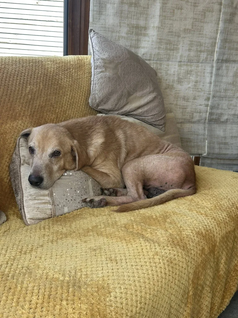Before Yogi could begin looking for a permanent home, he had to make one final trip to the vet. His skin had cleared and his fleas were gone, but he needed one last operation. This one left him feeling a little lighter…