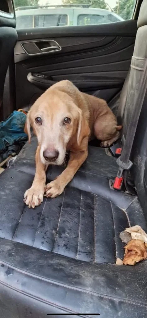Poor Yogi was found in a terrible state. He was spotted by chance during a police search of the Trent River in Gunthorpe. Curled up in the footwell of a car, he was trying to lie comfortably on top of old beer cans and plastic bottles. We were told his owner was in the pub and was currently living in the car with Yogi. Considering it was June, heatstroke was a serious concern.